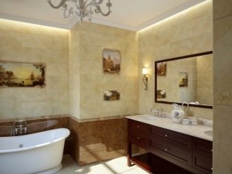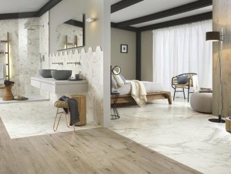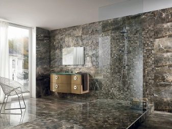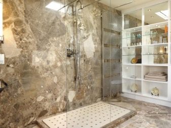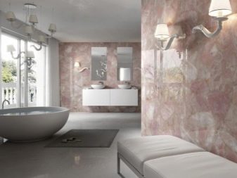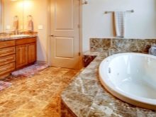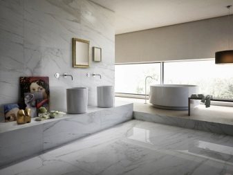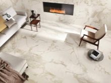 - Avec une petite hauteur des plafonds dans la pièce, vous ne devez pas arrêter le choix du marbre naturel. Les carreaux faits de matériaux artificiels sont beaucoup plus minces.