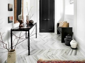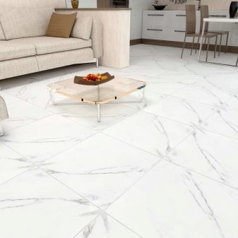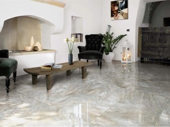 - Marbre grès. Ces dernières années, la finition de la porcelaine jouit d’une popularité extraordinaire. Les technologies d'impression modernes permettent au matériau d'être aussi proche que possible d'une pierre naturelle. Le choix des couleurs est suffisant pour tous les goûts et styles. La résistance accrue à l'usure et la résistance aux changements de température permettent l'utilisation de revêtement pour des applications extérieures et intérieures. Le grès cérame imitant le marbre convient bien au couloir. Dans le salon et la cuisine, il peut être utilisé comme revêtement de sol ou de mur pour les salles de bains et les toilettes.