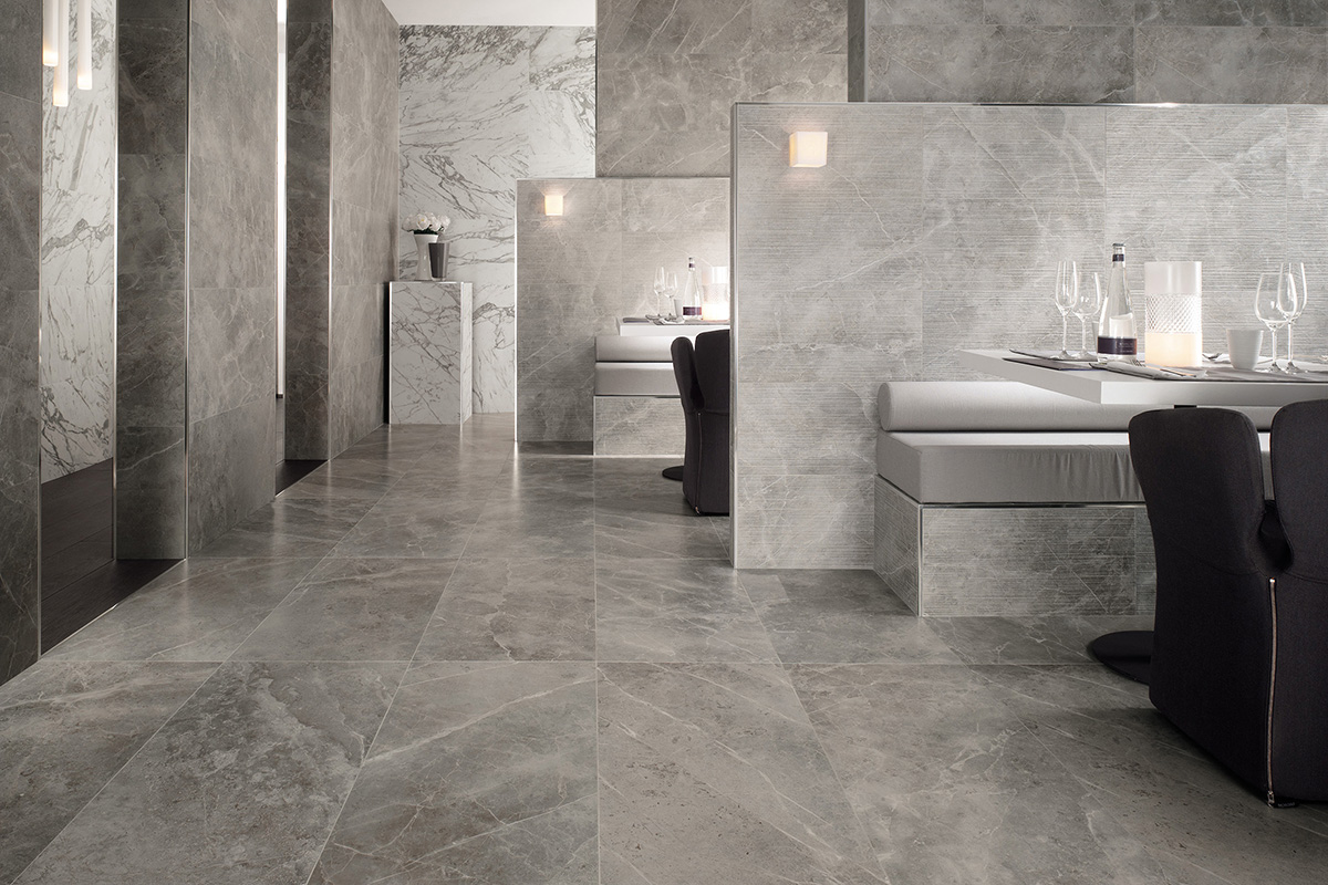 Les carreaux en grès cérame sont fabriqués dans les petites tailles et dans les grands formats 1200x600 mm, 750x1500, 1600x3200 mm. La dalle grand format est pratique pour la poseIl forme moins de coutures et a fière allure dans les grandes salles.