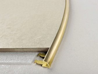 Le profil en laiton n'est pas seulement beau, car il imite l'or. Il est donc assez durable et est donc très demandé par les consommateurs. La portée des produits en laiton - étapes de la conception, délimitation des extrémités et amarrage des coutures. Les profilés en laiton chromé sont souvent utilisés dans les salles de bains, ils peuvent être combinés avec des mélangeurs de revêtements similaires et d'autres éléments décoratifs.
