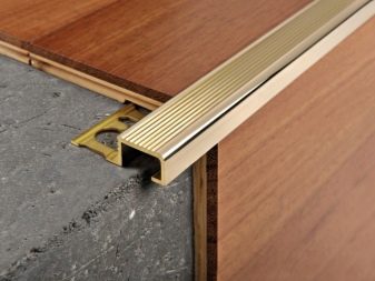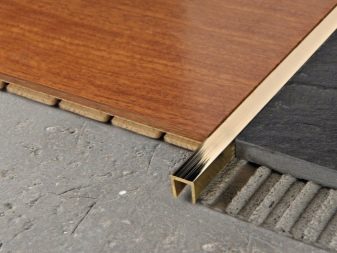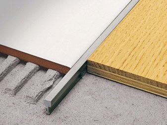 - Les profils à un niveau servent à fixer des surfaces du même matériau (linoléum, carrelage, stratifié, par exemple). Ce sont des assistants indispensables sous les portes, où se forme la zone de liaison du plancher.
