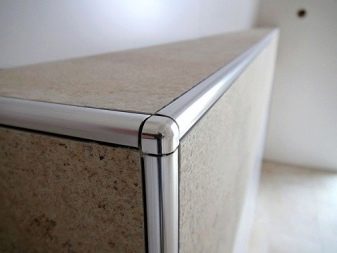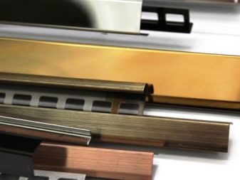 Acheter des tuiles chères, vous ne pouvez pas économiser sur les coins. Les plans en plastique de 12 x 12,8 mm rendent la zone de contact de deux murs parfaitement plane et attrayante. Les produits métalliques ont fière allure dans toutes les pièces, même si des carreaux bon marché ont été achetés. Le métal est durable, il peut durer 10 ans ou plus, lorsque le plastique perd son attrait esthétique après 5 ans de fonctionnement. L'avantage de la bordure en métal est qu'elle protège de manière fiable les bords de la dalle des ébréchures et des fissures dues aux chocs et autres influences externes.