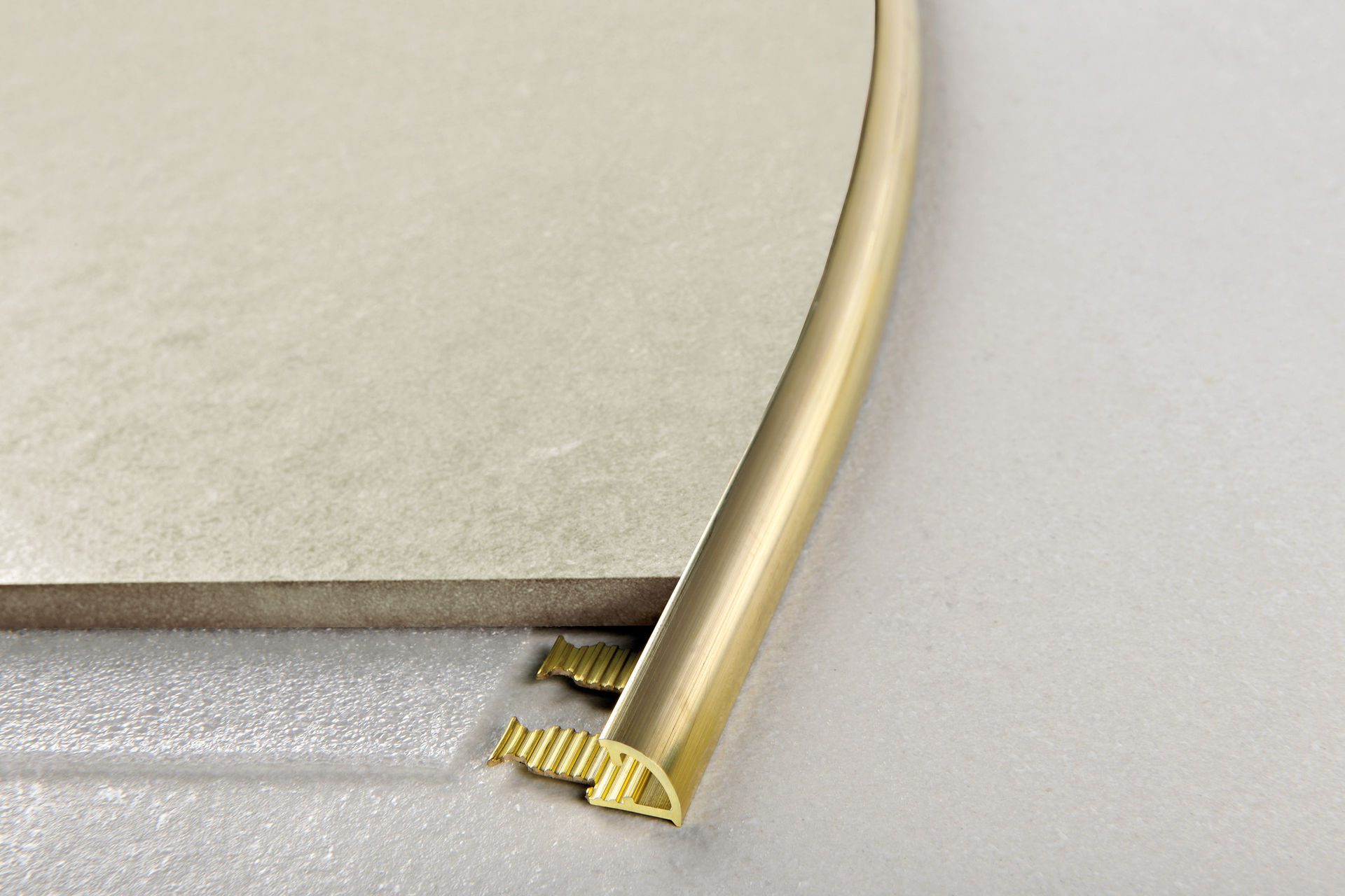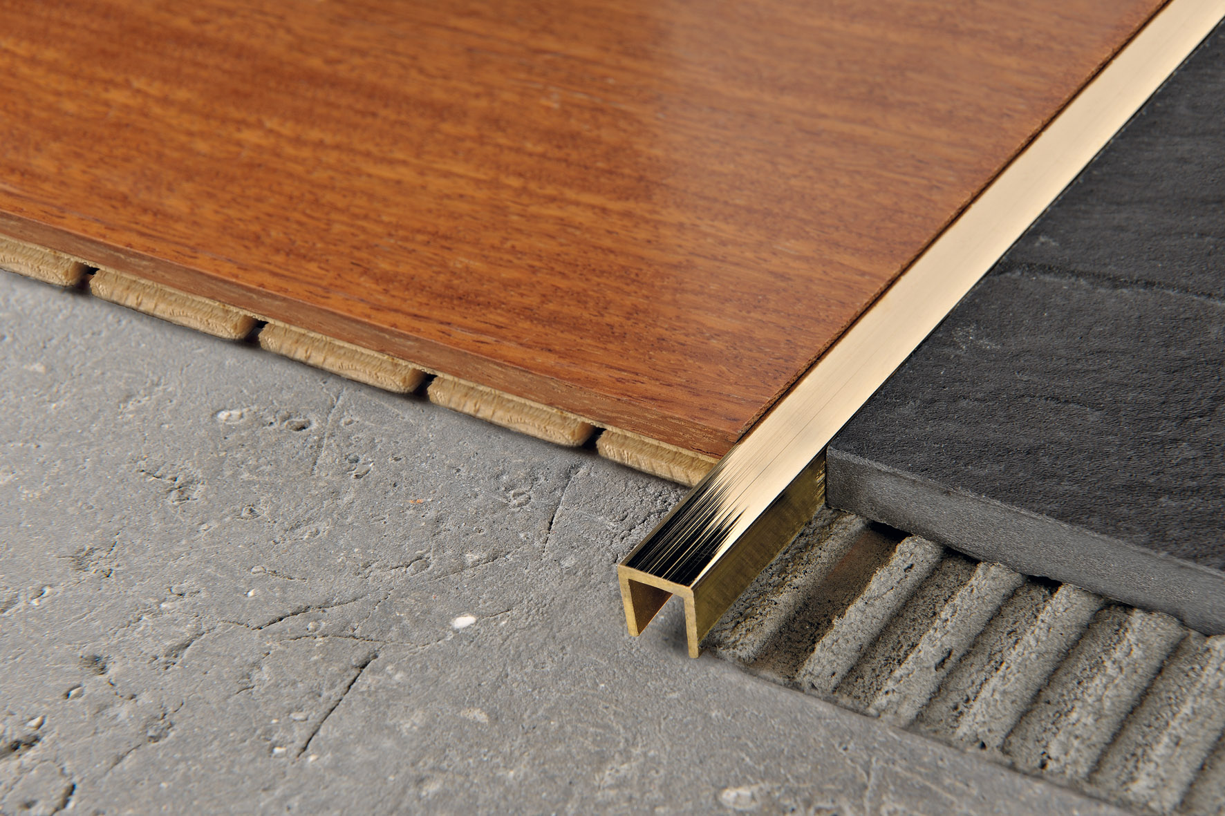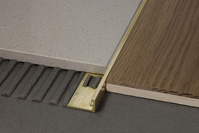 - Les profils d'ancrage sont un détail nécessaire lors de la combinaison d'un carreau de céramique avec un autre matériau.Des agencements en PVC flexible ou des variétés d’aluminium sont utilisés lorsque la limite entre les matériaux suit une courbe.