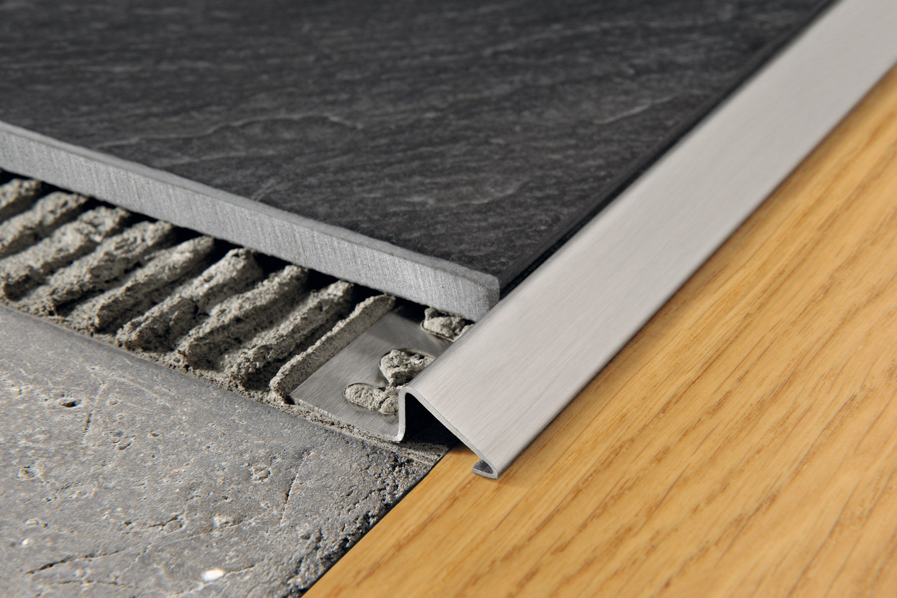 - Les coins et les joints de la dalle, associés à d'autres matériaux, sont protégés de manière fiable contre les ébréchures et autres dommages.