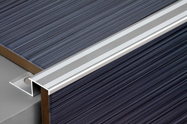 - La doublure est un profilé élastique qui résiste à l'eau, aux effets des substances agressives et aux basses températures. Patins antidérapants - profilé en aluminium plat avec rainure pour insérer une bande de caoutchouc. En plus de la fonction antidérapante, les recouvrements sur les marches assurent une protection fiable du carrelage contre l'abrasion de la surface, augmentant ainsi la durée de vie du revêtement de sol. Ce type de profil est indispensable pour la finition des zones à fort trafic, ainsi que des escaliers situés dans la rue.