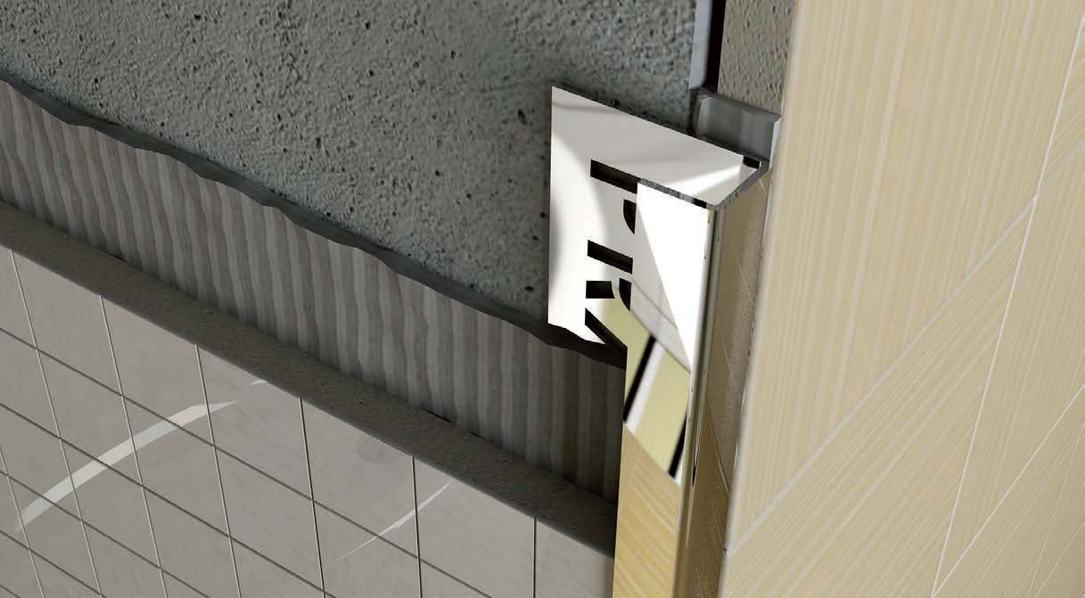 Grâce au profil en aluminium des carreaux, vous pouvez obtenir des angles clairs ou diviser en plusieurs zones des carreaux de différentes textures et couleurs.