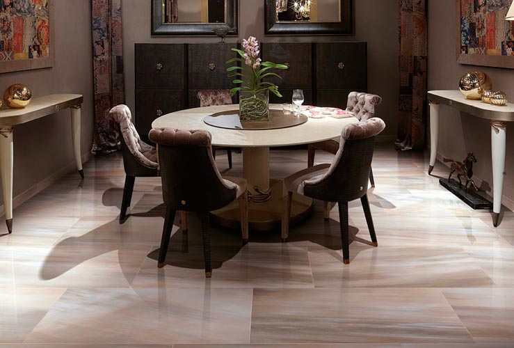 Pour les cuisines et les salles à manger, vous pouvez choisir des teintes claires imitant l'agate et les perles.