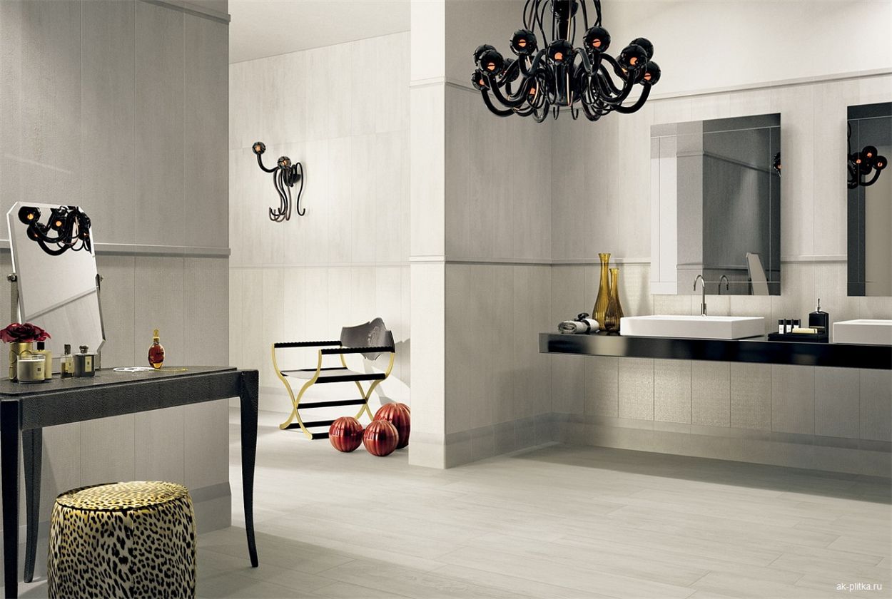 Parmi la plus grande sélection, vous pouvez facilement choisir des produits pour la finition des surfaces du sol et des murs. Des options de différentes collections peuvent être combinées les unes aux autres, créant un appartement royal luxueux à la maison.