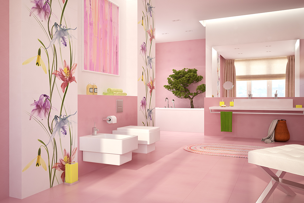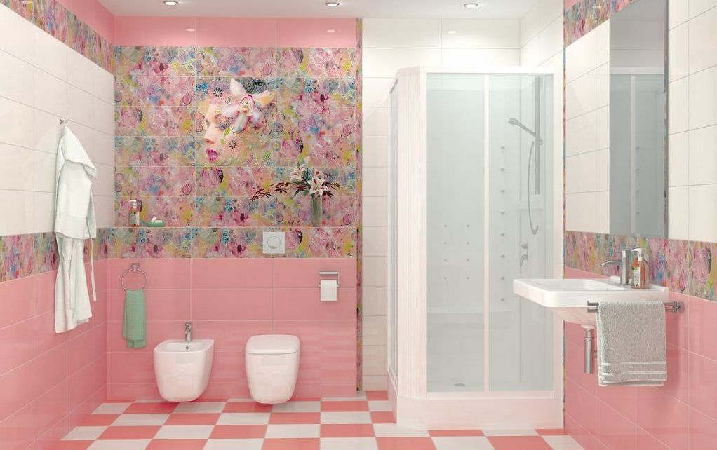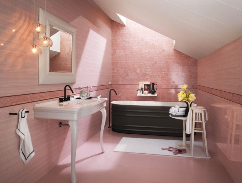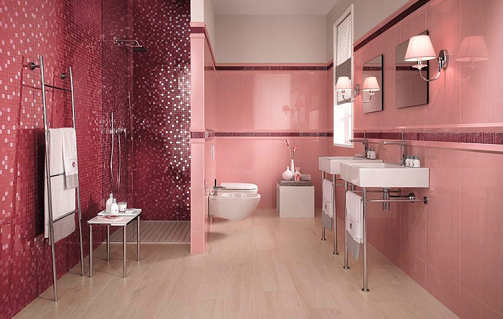 L'une des couleurs courantes et inhabituelles est le choix des carreaux de céramique roses.