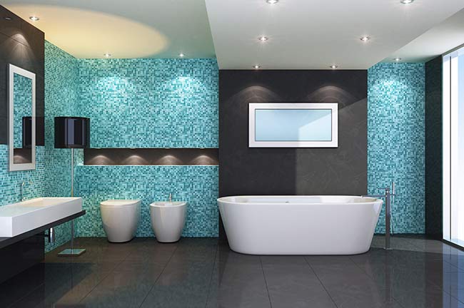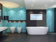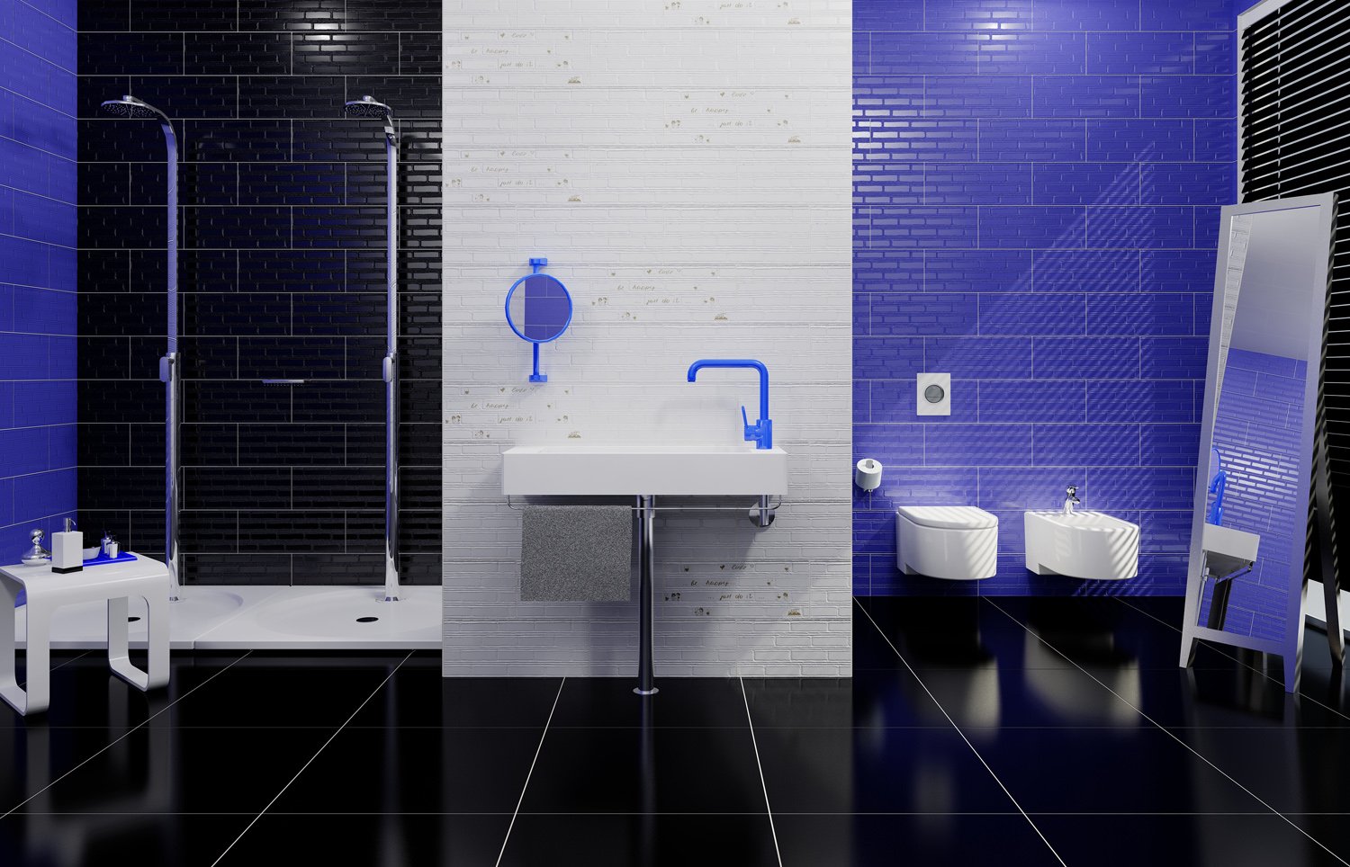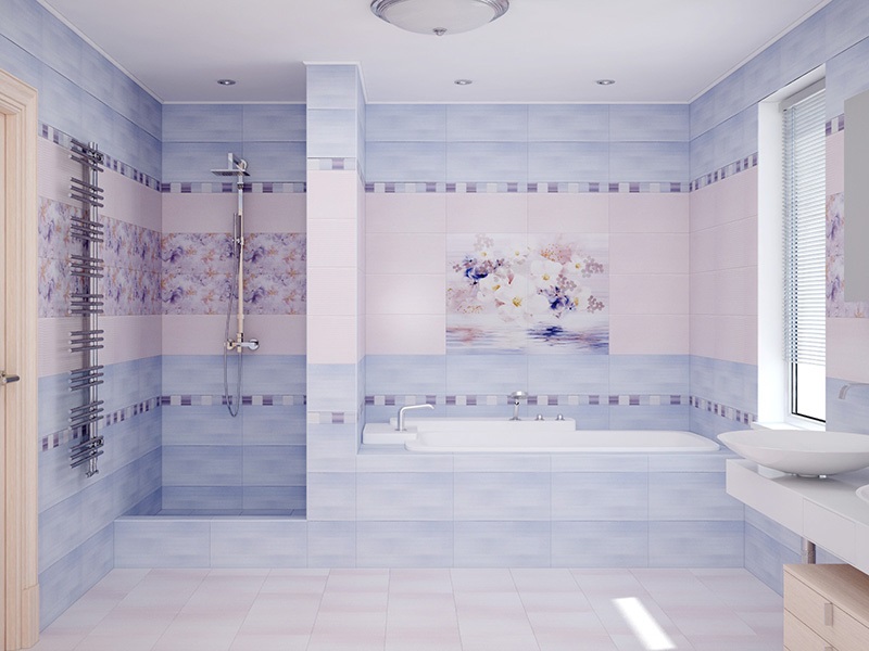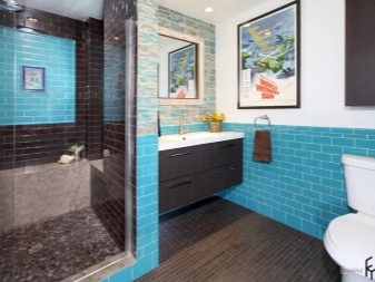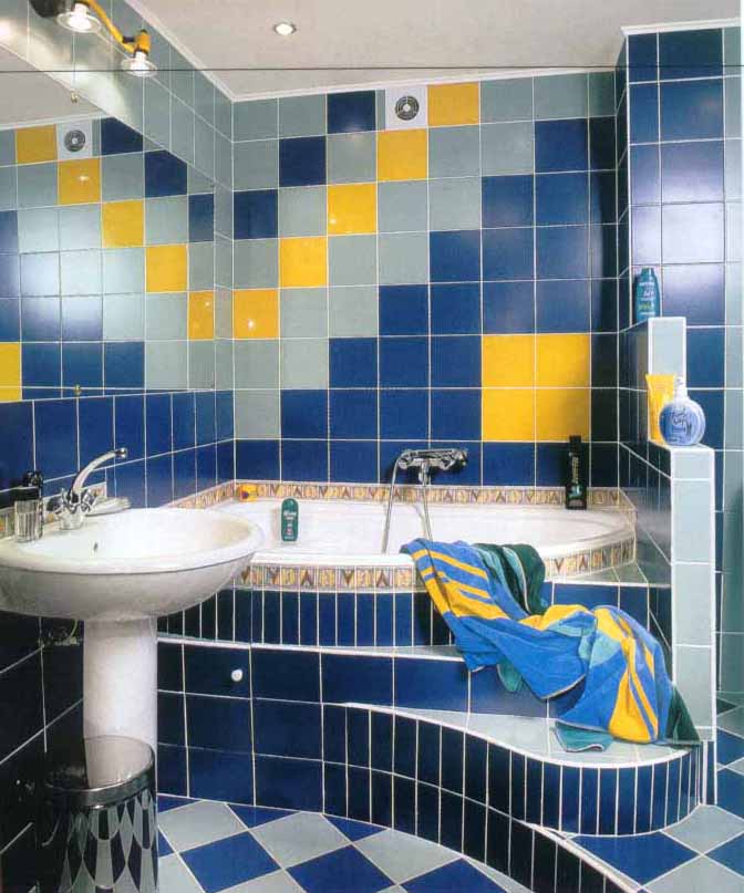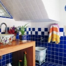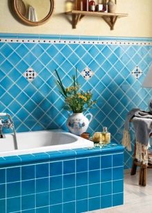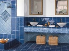 - Texture. La texture du matériau de finition des carreaux bleus peut être variée (matrices brillantes ou mates). Les concepteurs assurent que cet aspect n’est pas particulièrement important lors du choix d’un matériau dans de telles couleurs.