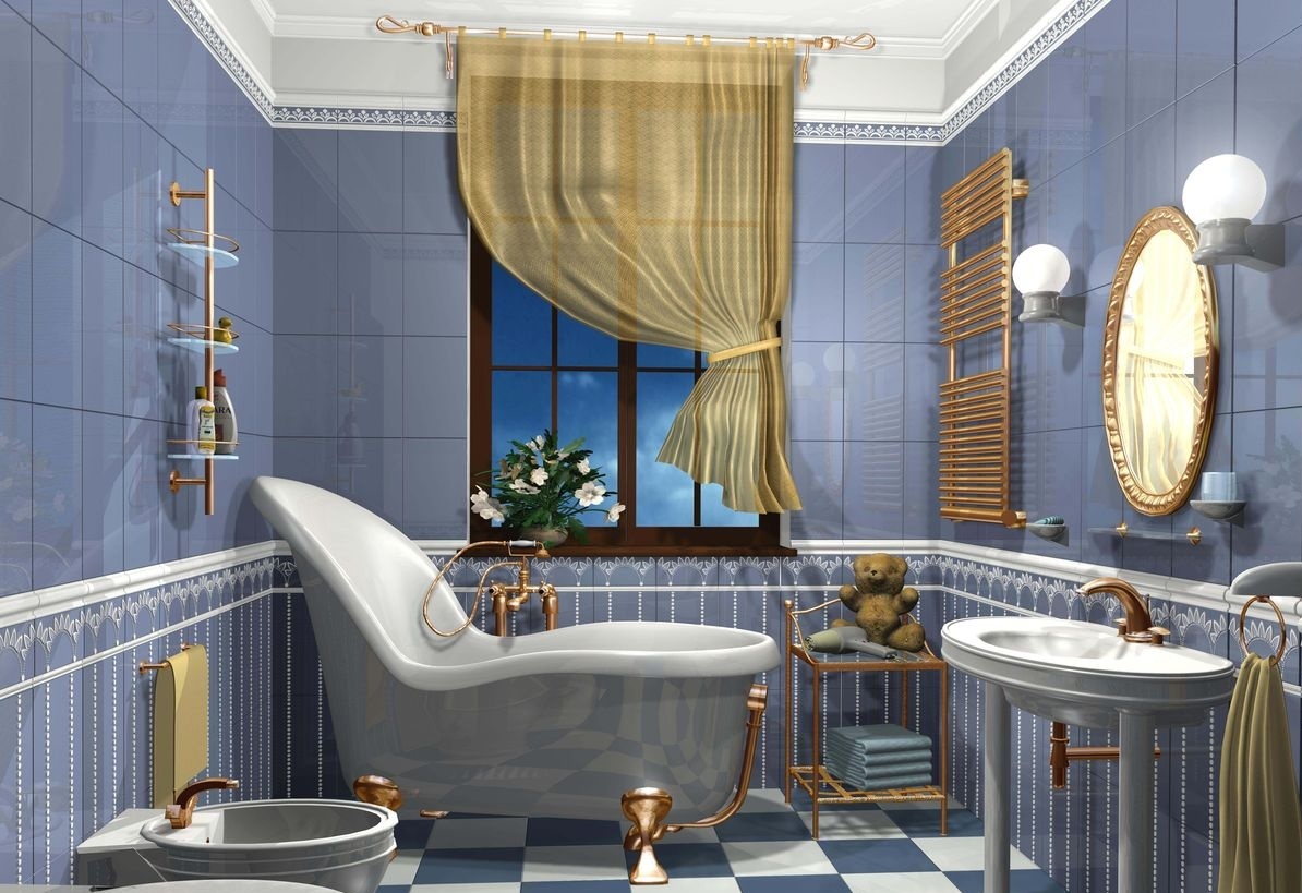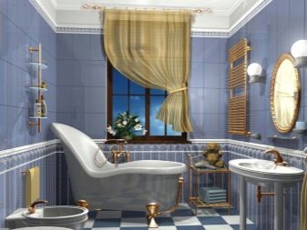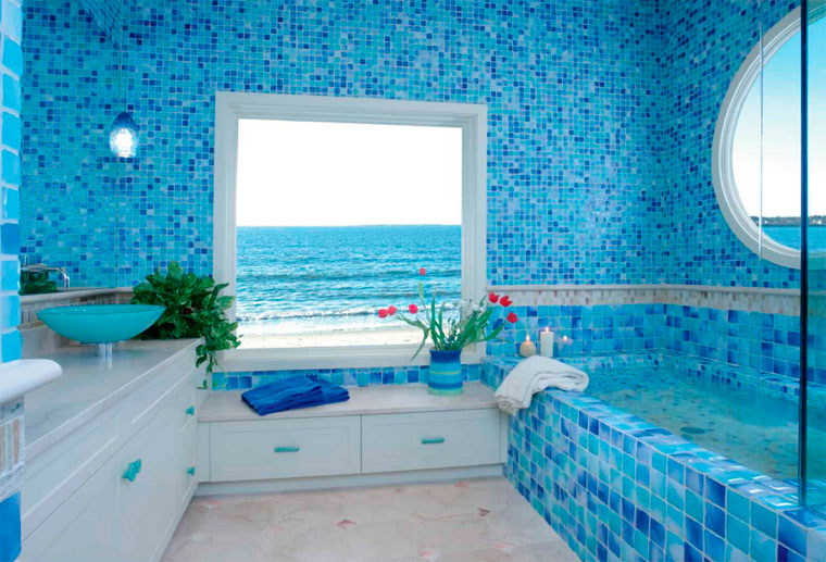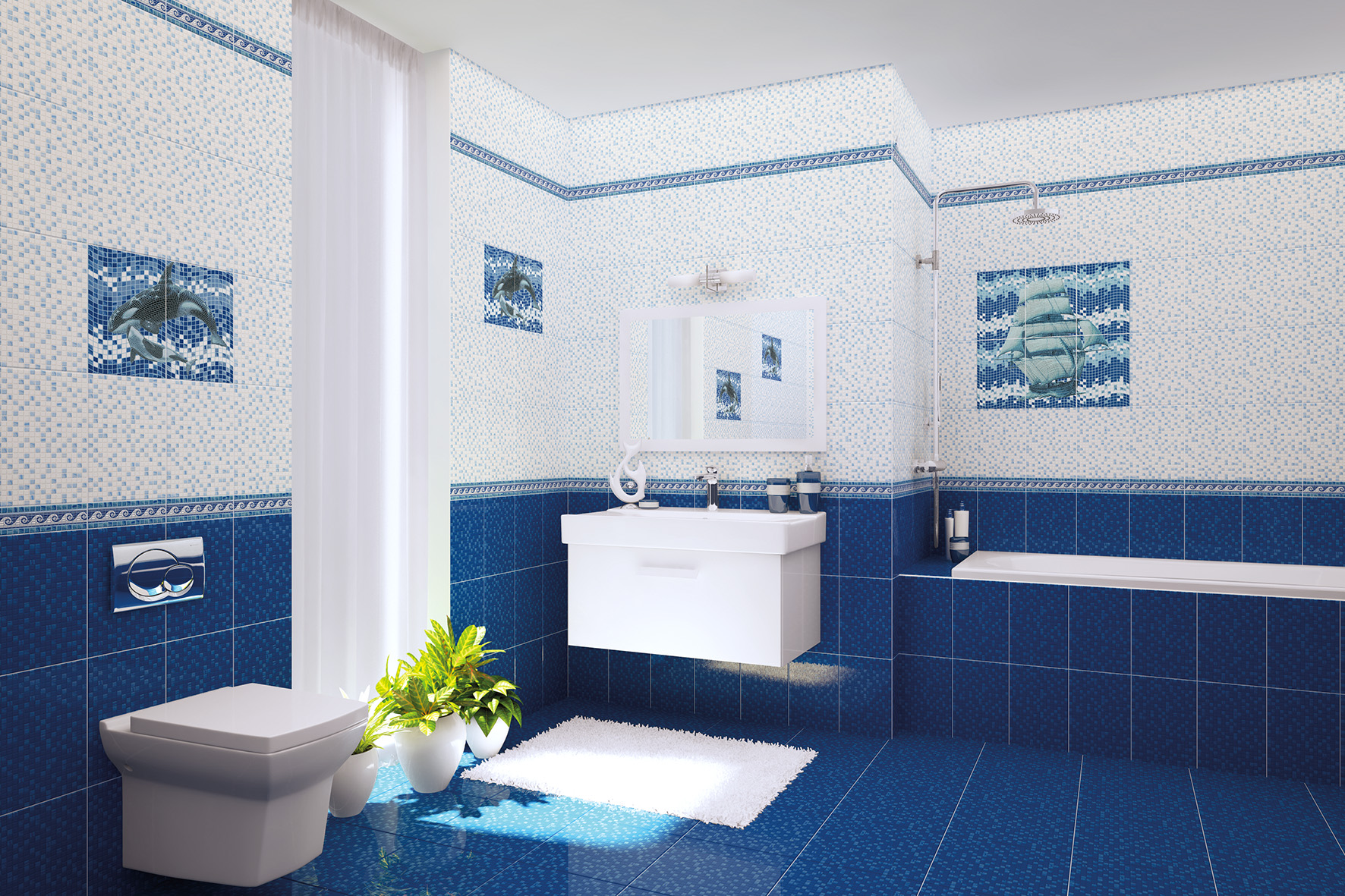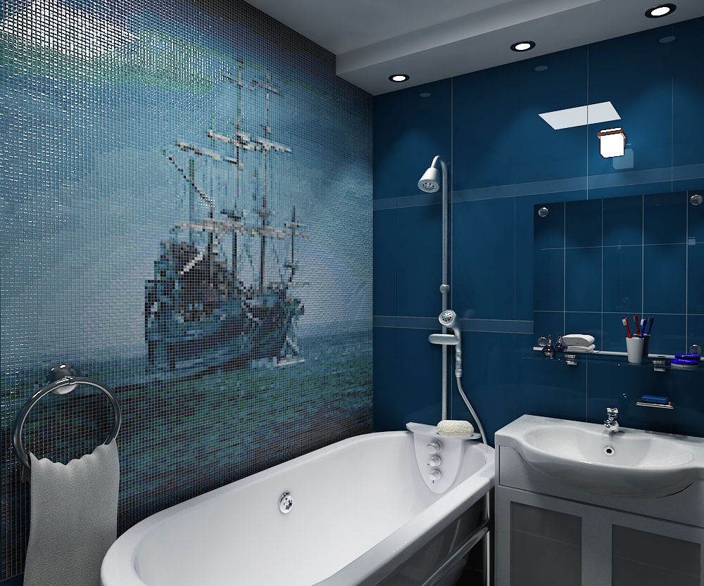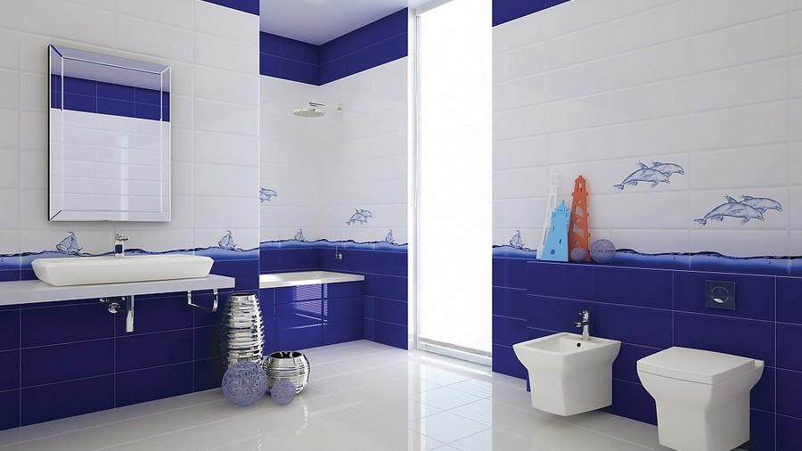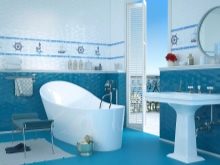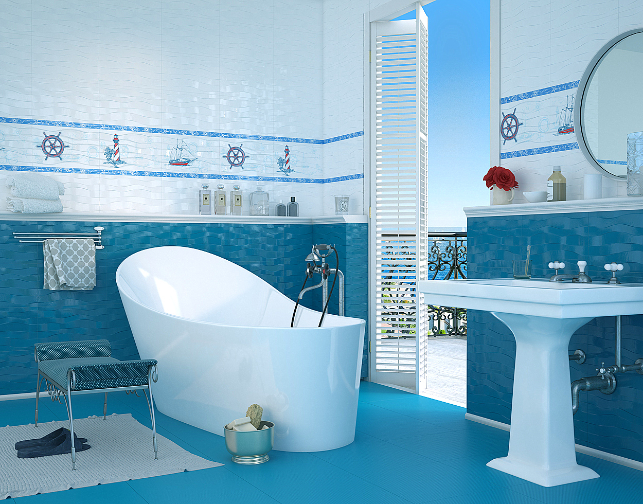 - Classique. Thème Marine - un design de salle de bain classique, qui ne se démode pas, tout en restant pertinent.Carrelage en couleurs bleu est un must pour un tel décor.