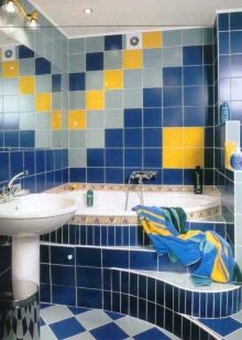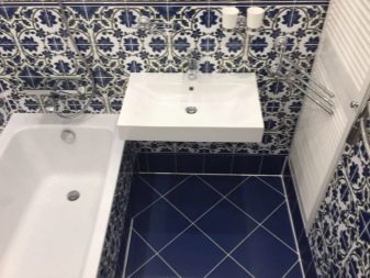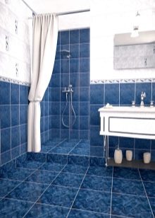 Si vous souhaitez utiliser des carreaux bleu foncé dans une pièce de petite taille, combinez-les avec des matrices claires. Dans le processus de pose utilise la méthode standard de l'échiquier, alternant des tuiles de deux couleurs sur la même surface.