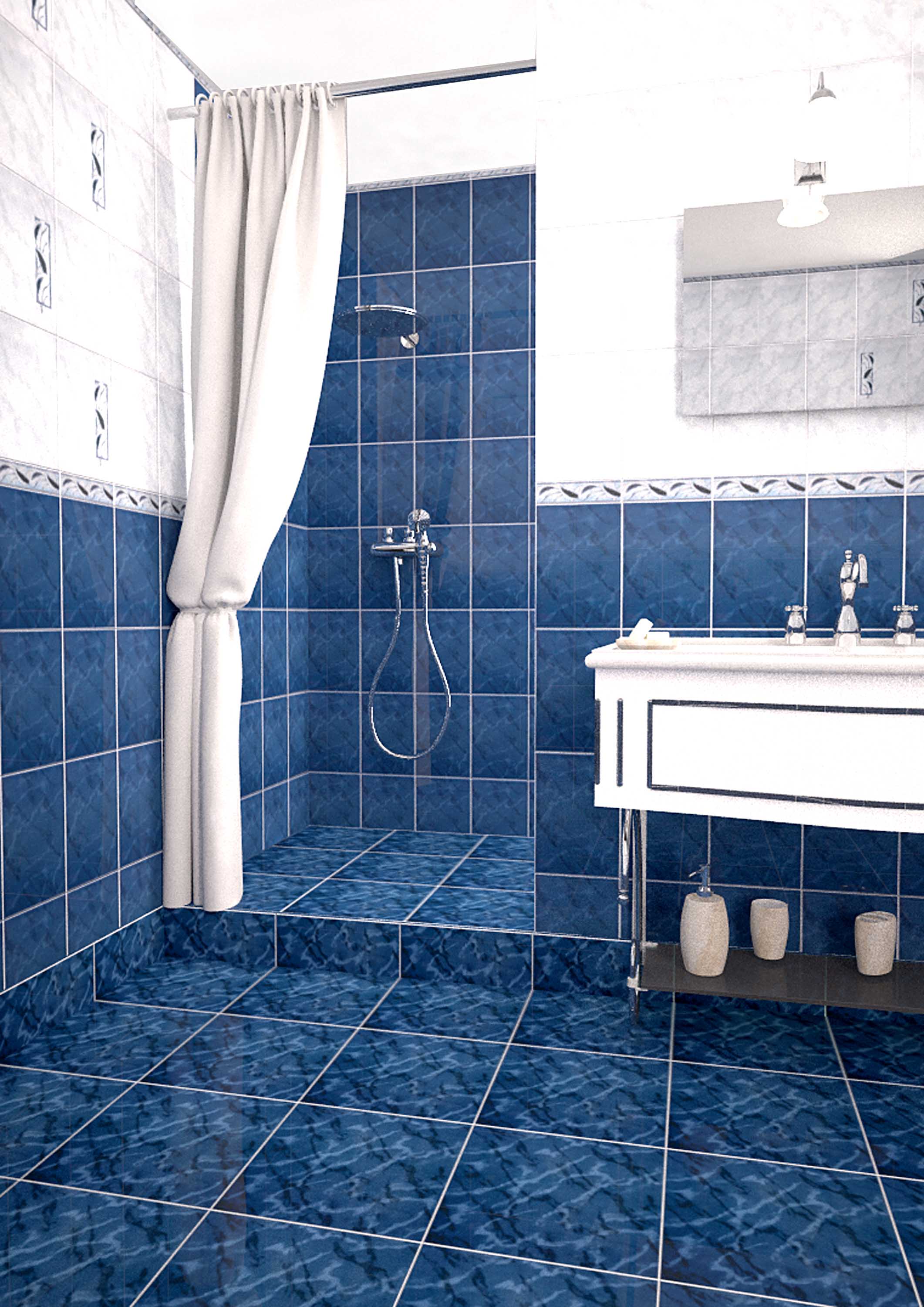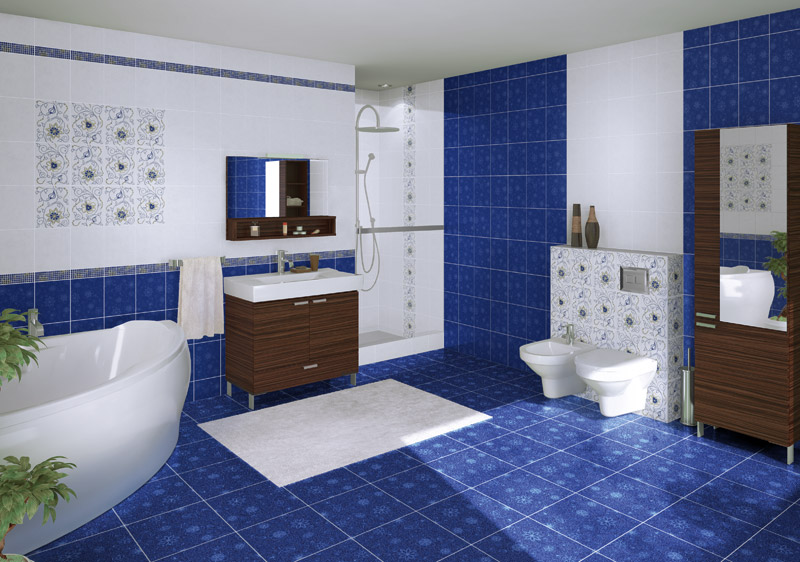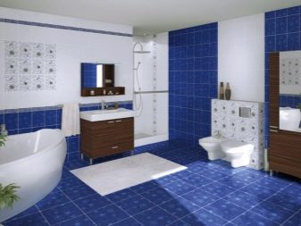 - Paul. La couleur bleue est idéale pour décorer le sol. Vous pouvez utiliser une seule couleur pour concevoir toute la surface de la salle de bain ou de la cuisine, sans autres matrices de couleur différente. Pour faire face aux étages dans les couloirs et les couloirs, le carrelage bleu n'est pas très approprié. Les exceptions sont certaines techniques de conception.