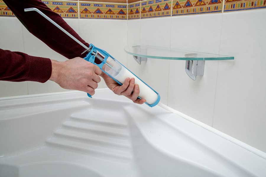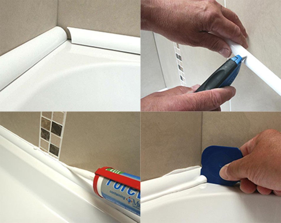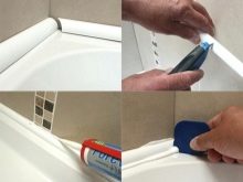 Même avec une salle de bain fixée au mur, de petites crevasses restent dans la zone de jonction, qui doit être scellée avec un scellant avant de monter les coins. Dans ce cas, la meilleure option serait d'utiliser une version du scellant en aquarium. Il est possible de commencer les travaux après séchage complet.