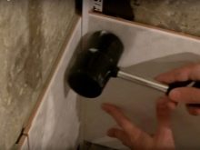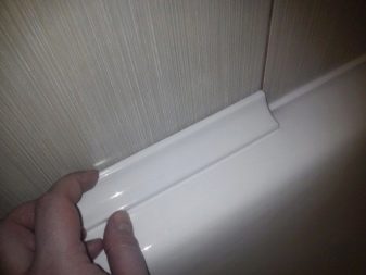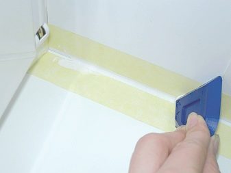 Afin de ne pas gâcher le revêtement en émail, le ruban de masquage est collé sur le bord de la baignoire elle-même.. Après cela, les lattes doivent être coupées en fonction des dimensions de la zone d'installation. Vous devez ensuite appliquer des «clous liquides» ou une composition similaire aux coins.Posez ce type de lattes directement sur le bord de la baignoire, tout en les appuyant fortement contre la baignoire et le mur.
