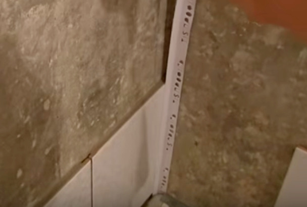 Le montage des coins internes sur le matériau de carreaux doit être démarré après le revêtement complet de l'un des murs. Ensuite, la mise en page est étroitement appliquée sur le côté opposé. Lors de la finition du carrelage mural suivant, dirigez-vous dans la rainure de ce coin, puis appuyez fortement. Même avec une installation assez dense, des vides se forment.Le travail de finition, ces vides sont généralement scellés avec de la colle.
