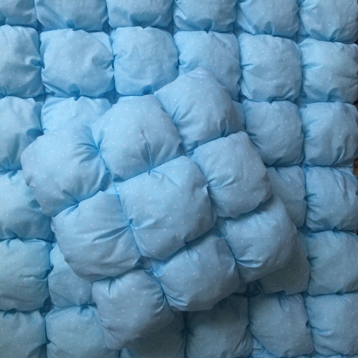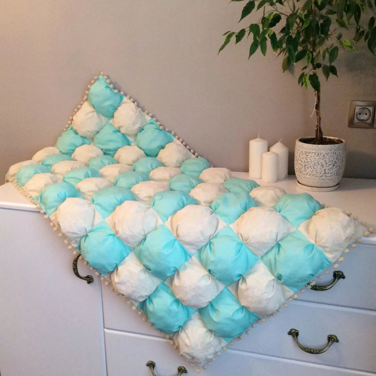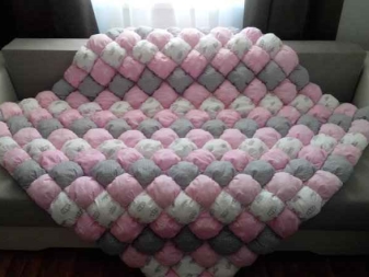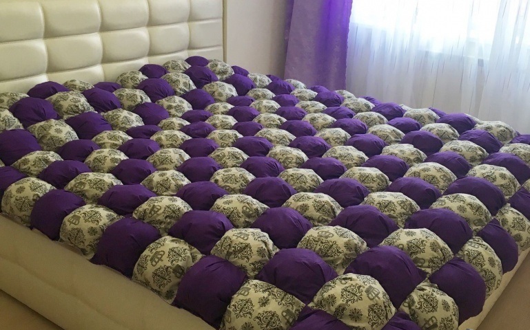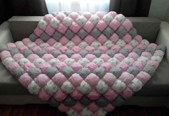 La couverture «bonbon» (ou «bombon» - les deux noms sont également communs) est un produit fabriqué en technique de patchwork avec bourrage. Il se compose de nombreux carrés identiques remplis de polyester, de hollowfiber ou de molleton. Cela ressemble à une toile, faite de nombreux petits oreillers. Une telle couverture a l’air inhabituellement mignon et confortable. Des artisanes dans tout le pays, non seulement des couvertures, mais aussi des oreillers, des lits bébés, des enveloppes de caisse et autres petites choses mignonnes pour bébés, utilisant la technique du bonbon. Chaque produit est un motif spécialement sélectionné qui les rend uniques.
