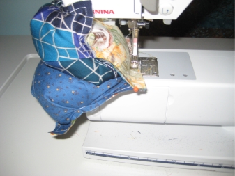 - Ensuite, la gaze est cousue sur le côté sombre de la future couverture.