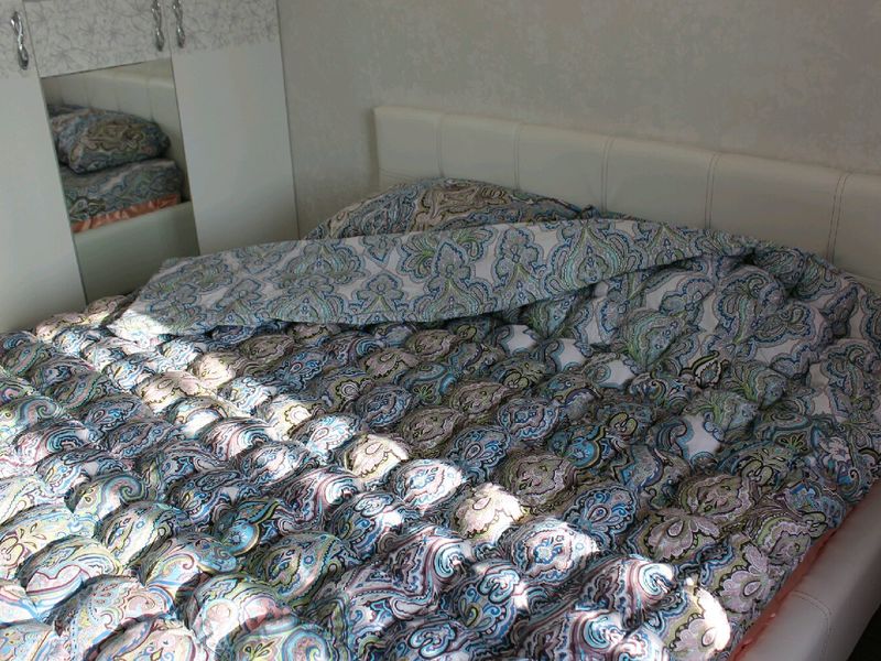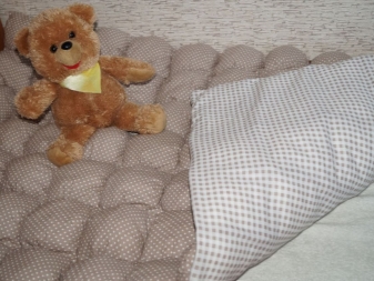 La couverture «Marshmallow» nécessite un soin particulier - un lavage délicat avec une bonne rotation. La charge à l'intérieur des tampons devra se redresser les mains après le lavage. Il est impossible de repasser la couverture par l'avant (le mastic synthétique fondra tout simplement) - il suffit de cuire à la vapeur à l'intérieur.De plus, les mères notent qu'une couverture tridimensionnelle prend beaucoup de place lorsqu'elle est pliée et qu'il est peu pratique de la ranger dans un placard.