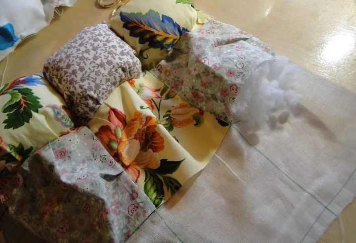 Vous devez créer autant de pads que le programme le requiert. Ensuite, ils sont cousus ensemble en rangées et ajustés sur le tissu de base.