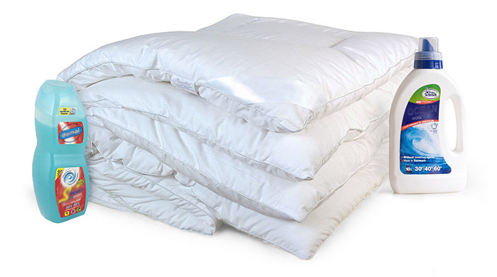 Le produit nécessite un nettoyage à sec.. Pour ce faire, vous pouvez simplement assommer à l'ancienne ou utiliser un aspirateur. Certains décident encore de laver ce produit. Particulièrement difficile à faire avec un double échantillon. Laver le produit devrait être en été, car sécher une grande quantité de laine est très problématique.