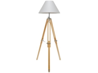 La première place en popularité prend à juste titre une lampe de sol Garda Decor. Un trépied en bois clair et un abat-jour blanc confèrent au produit un aspect original et élégant. Le produit peut souvent être trouvé dans les intérieurs modernes. Le modèle existe en bois clair et noir.