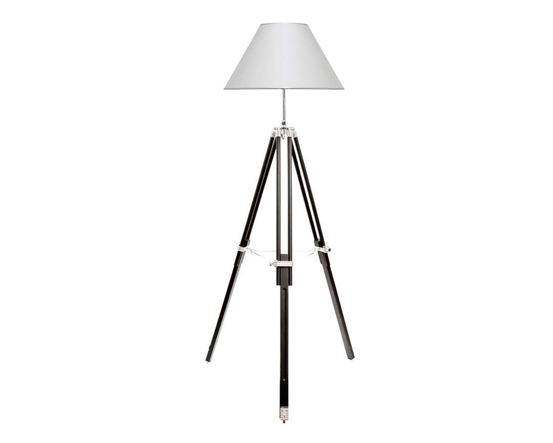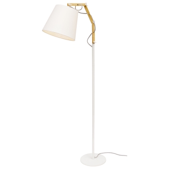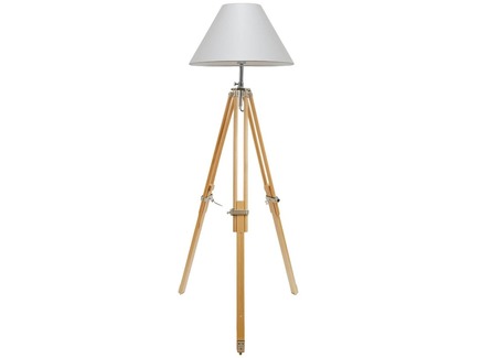 Lampadaire populaire et italien "Arte Lamp Pinoccio". Un tel appareil est idéal pour le style loft. Le plafond est en tissu et la longue jambe en bois brun.