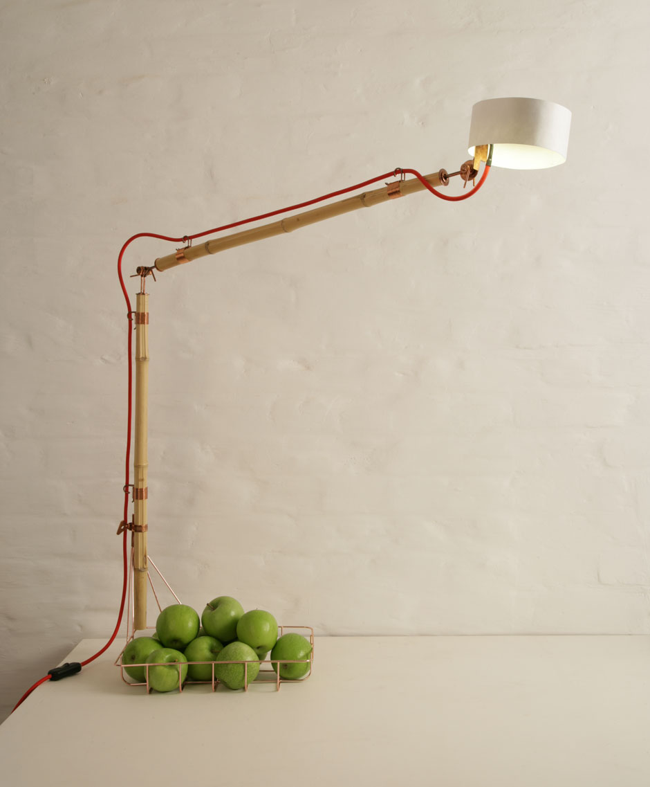 Le designer Tord Buntye a créé une série "Léger". La conception des lampes de sol est immédiatement visible style japonais. Tord Bunt'e a utilisé un câble textile, une attelle en cuivre et du bambou. Une particularité du modèle est un panier pour le contrepoids.