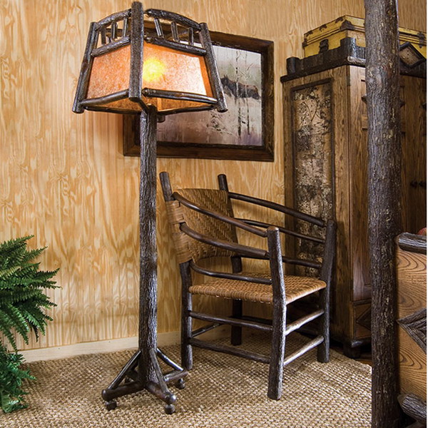 Lampadaires en bois parfaitement mis en valeur le style rustique. Le matériau du luminaire peut se chevaucher avec une décoration murale ou au sol.