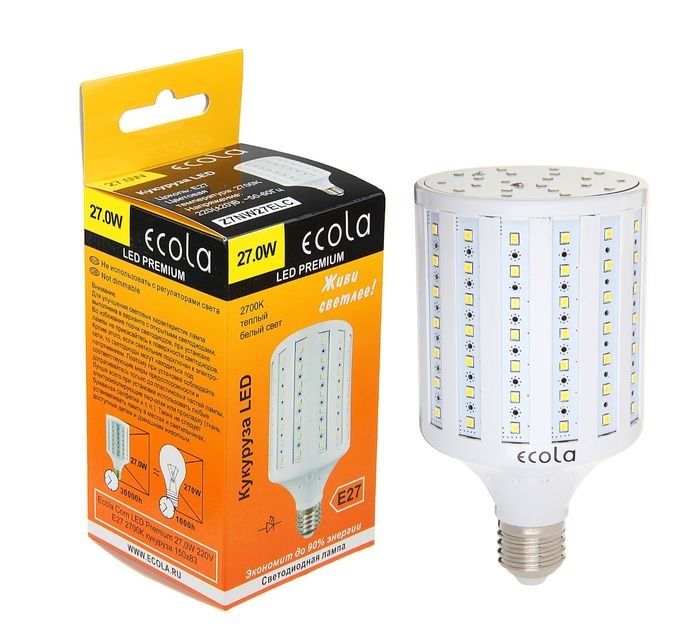 - Marque très populaire Ecola. Depuis plus de 10 ans, il présente un grand nombre de modèles différents d’ampoules à LED. Ce plafonniers, et LED, et le design classique d'économie d'énergie. La marque propose un large choix, présenté sous forme de réflecteurs à LED, de lampes à maïs à LED, de modèles sous forme de bougies, de panneaux, ainsi que de projecteurs préfabriqués et encastrés.