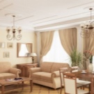 Le but principal du salon est de recevoir des invités. À cet égard, la lampe est placée à côté du mobilier, sur lequel se trouvent amis et parents lors de réunions à domicile. Des tables basses, des tables de chevet, des étagères de cheminée servent de plateformes. Si les locataires de la maison veulent se concentrer sur les photos, tous les éléments décoratifs, la lampe est installée à côté d'eux.