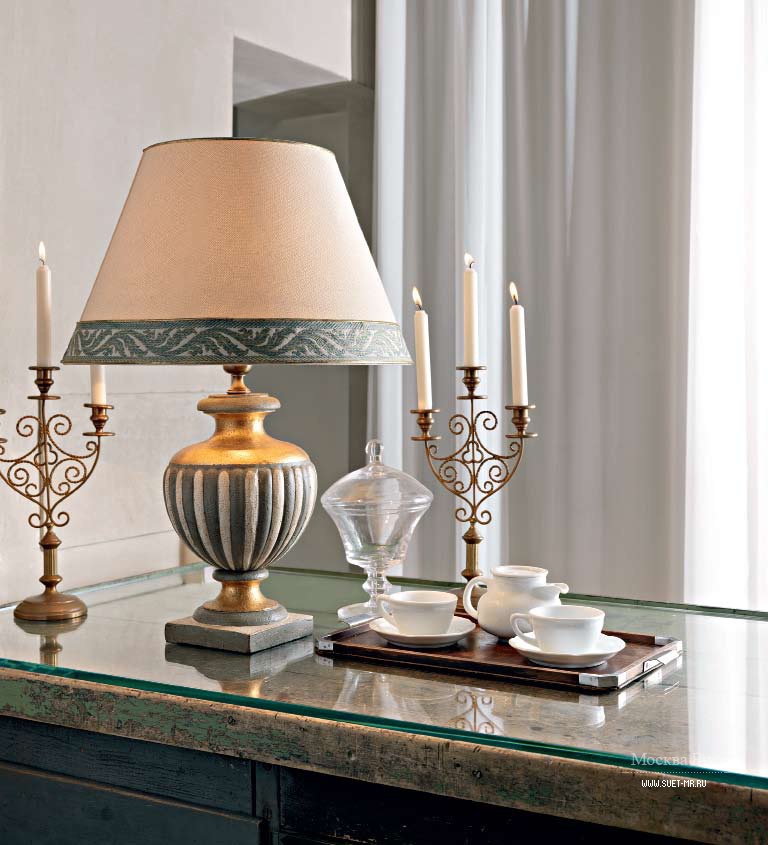 Les modèles coûteux sont décorés de pierres précieuses ou semi-précieuses. Des métaux précieux (argent, or) sont également utilisés. Les luminaires haut de gamme sont uniquement disponibles dans les magasins spécialisés vendant de beaux objets de décoration de l'étranger (Italie, France, Espagne).