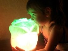 - Lumières colorées comme des enfants. Une telle lampe semble inhabituelle et suscite la curiosité. Cela aidera à distraire les enfants qui ont peur du noir. Un miroitement délicat va rapidement les endormir.
