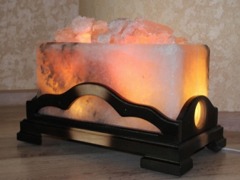 Une lampe à sel est un luminaire spécial fabriqué à partir d'un minéral comme le sel. À l'intérieur du cristal, une ampoule est installée avec un fil qui le relie à une prise de courant ordinaire. Le produit se termine par un support en bois.