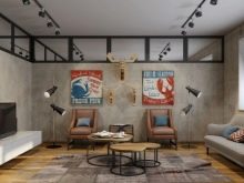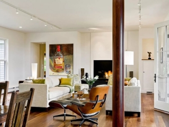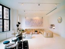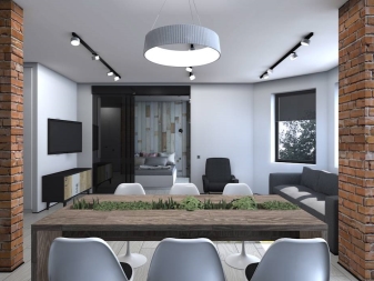 - Si studio appartement divisé en zones de loisirs, salle à manger, divertissement, les lampes sont installées au-dessus de chaque zone - dans l'espace de repos situé au-dessus du canapé et de la table basse, dans l'espace de divertissement situé au-dessus de la table pour les jeux de société, dans l'espace de restauration, le groupe de la table et des chaises est mis en évidence. Cela vous permet de sélectionner une zone et de minimiser l’importance accordée aux autres.