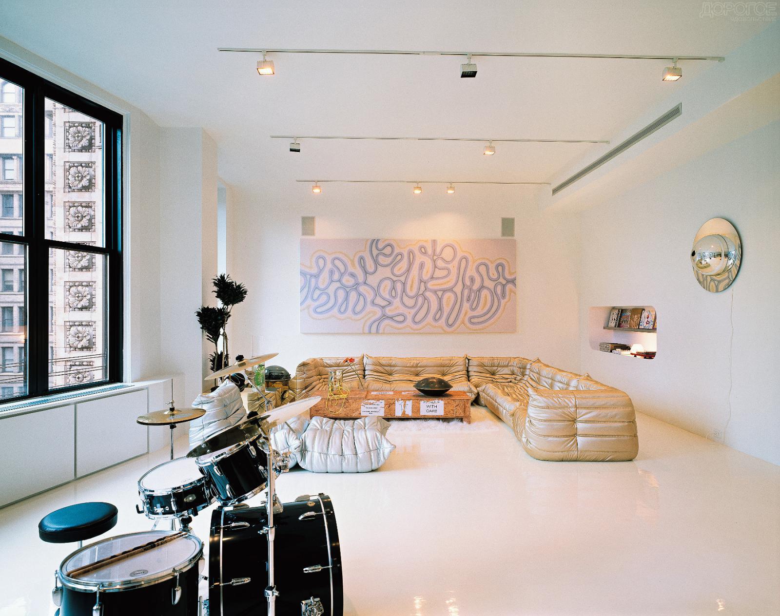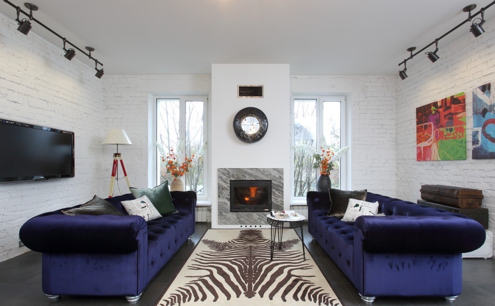 - S'il s'agit d'un salon, l'éclairage est monté autour du périmètre de la pièce. Dans ce cas, il est préférable de choisir des pneus à phases multiples de manière à pouvoir mettre en valeur discrètement la pièce tout en regardant la télévision. Avec cette installation de lampes, la lumière des lampes ne se reflète pas sur le téléviseur et les yeux ne se lassent pas du contraste de l'écran et du manque de lumière.
