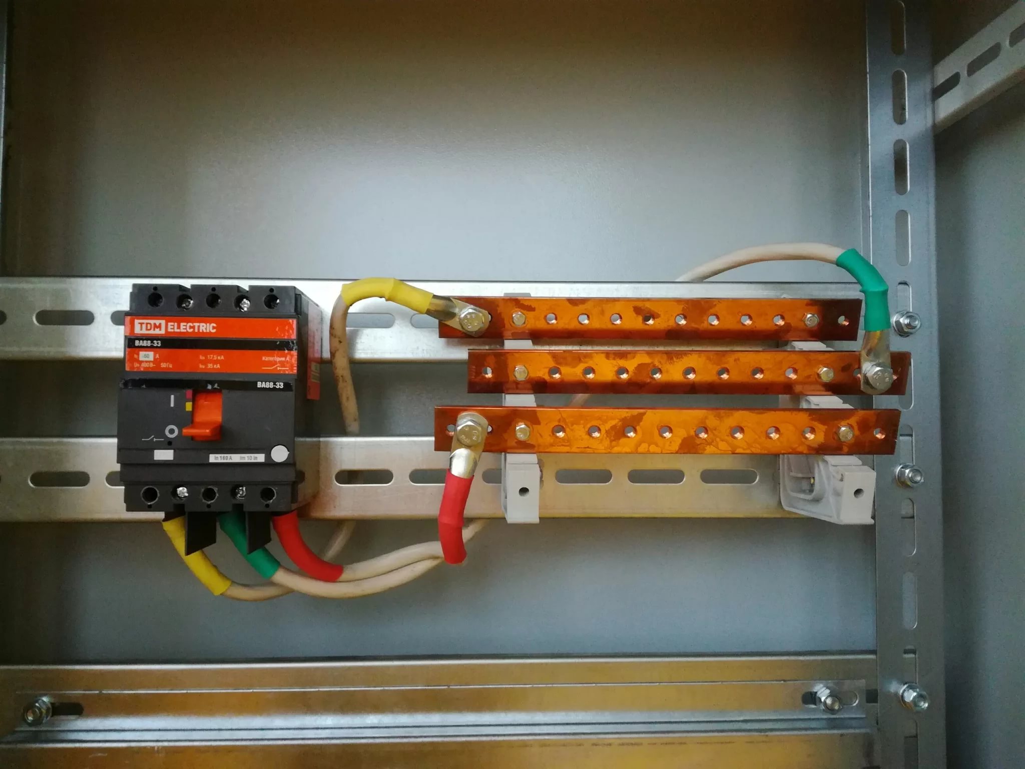 Un jeu de barres est une construction en alliage d'aluminium à laquelle les contacts électriques sont en cuivre. Les broches sont en acier inoxydable ou en plastique isolé. Le luminaire est fixé avec des pieds à coulisse souples, en forme de croix, en forme de lettre «G» et «P», mais aussi simplement droit.