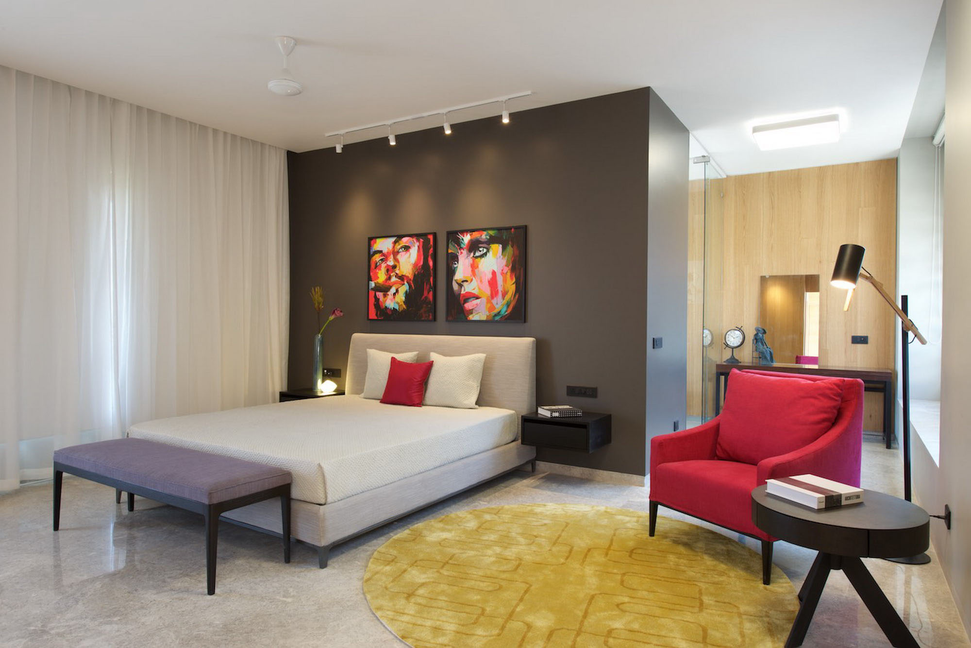 - Dans la chambre à coucher, l’éclairage sur rail est idéal pour mettre en valeur le vestiaire et la coiffeuse. Elle maquillera idéalement et montrera toutes les nuances de la tenue choisie. Il est également possible d'installer la piste au-dessus de la tête de lit pour une lecture confortable.
