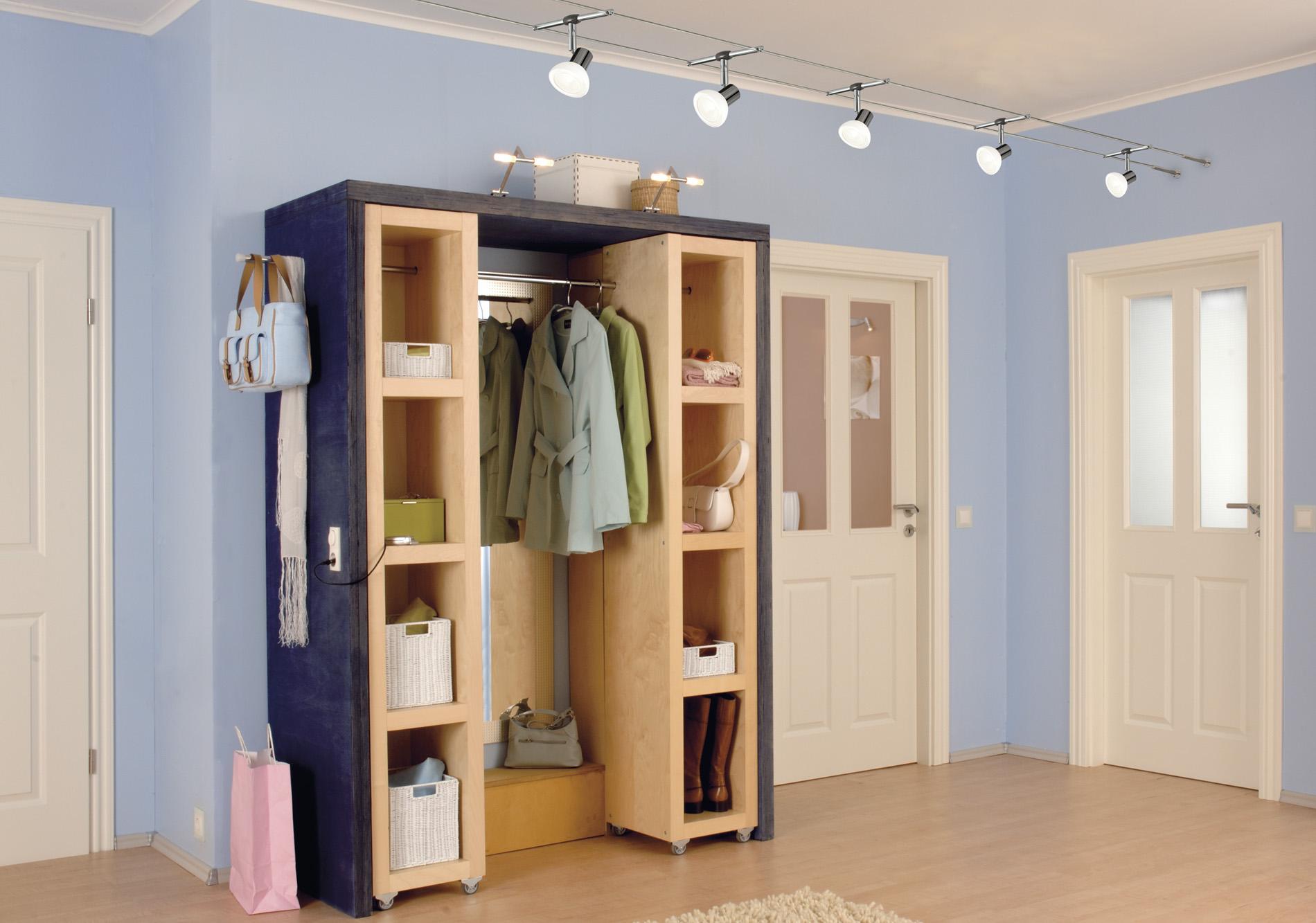 - Dans le couloir vous pouvez accrocher le fil de bus exactement au centre, diriger les lampes vers les objets désirés - un miroir, une armoire, un cordonnier.