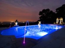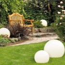 Une autre idée intéressante d’éclairage multicolore pour la piscine est l’utilisation de sphères lumineuses rondes et flottantes en verre de différentes nuances. Un tel rétroéclairage "à la dérive" ne permettra pas seulement de mettre en évidence la zone du réservoir. En raison du changement constant d'emplacement, l'éclairage lui-même change également, de sorte que le jardin soit différent à chaque fois, d'une manière nouvelle.