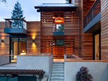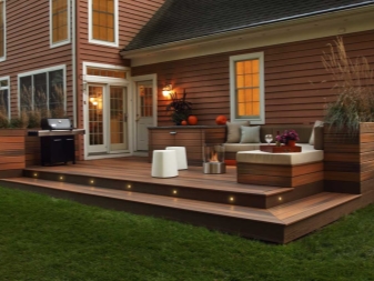 Pour la terrasse est également invité à installer des appliques murales supplémentaires. Il n'est pas nécessaire de choisir des modèles de grande taille avec un degré d'éclairage élevé; les modèles muraux sont davantage utilisés pour créer un confort que pour un éclairage réel. Arrêtez le choix sur les sources de lumière chaude et confortable.