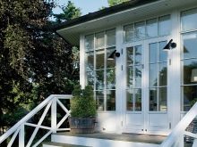 Pour le porche, appliquez des plafonniers ou des appliques murales, installés sous le pic.Ils doivent donner suffisamment de lumière pour pouvoir voir les marches, sans effort ni regard. Le porche de la maison peut être équipé de lanternes disposées des deux côtés des marches. Un tel mouvement donnerait de la grandeur à la vue de la structure, car elle est souvent utilisée pour décorer de grands escaliers classiques.