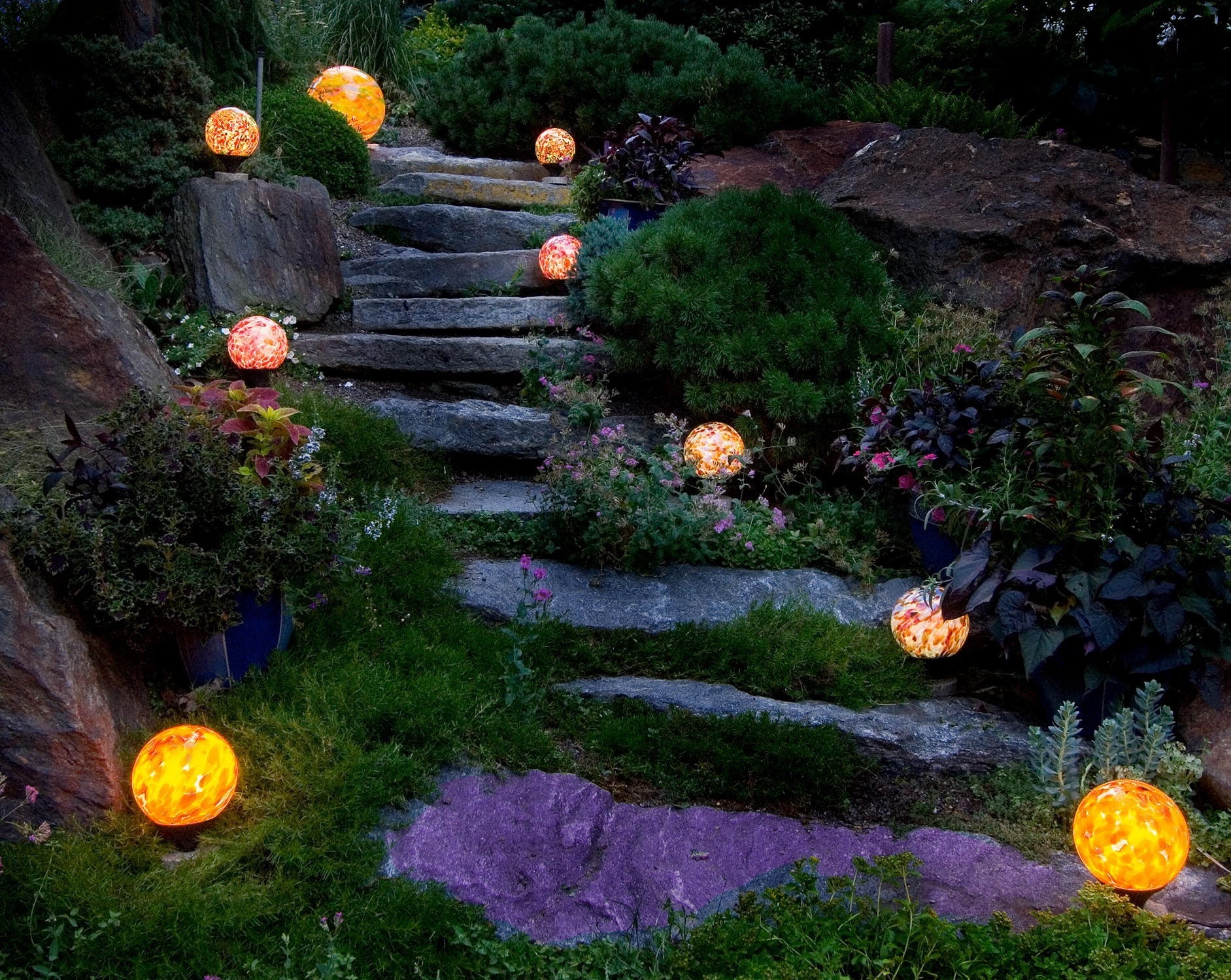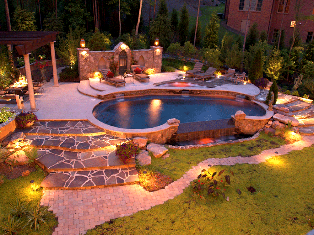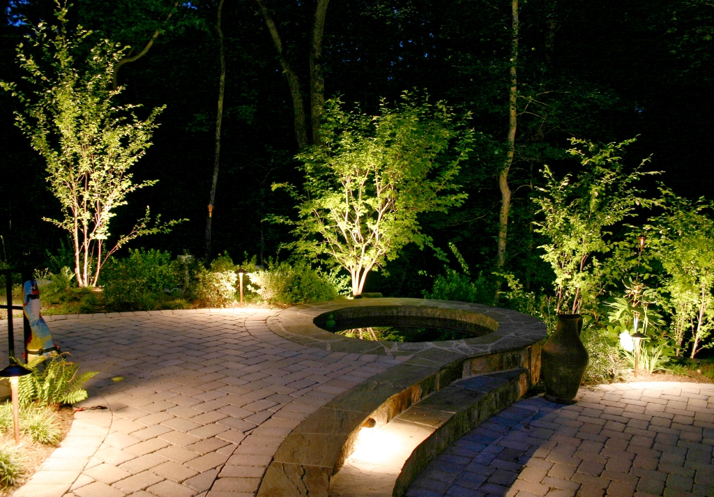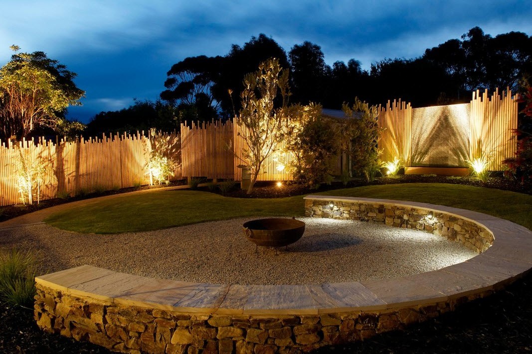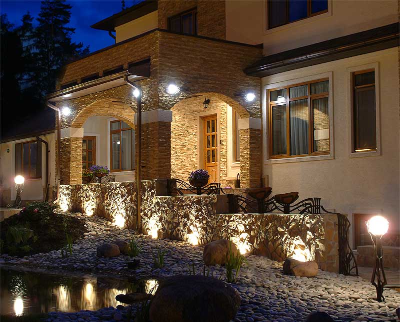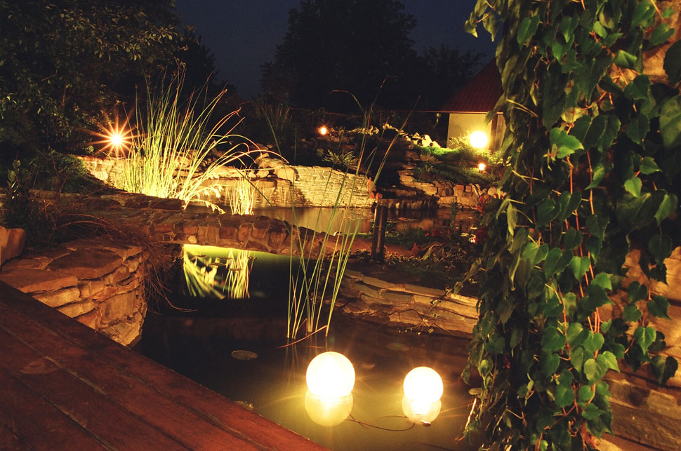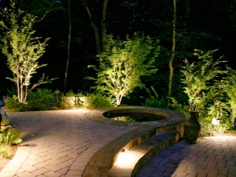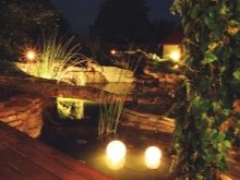 Dans le jardin, ils utilisent des éclairages pour les arbres, pour la composition de plantes ou simplement dans les coins de la parcelle mal éclairés. Eclairage obligatoire des fontaines ou autres étendues d'eau, comme un petit étang. Ceci est fait non seulement pour un remplissage esthétique, mais aussi pour des raisons de sécurité, afin qu'une personne perdue dans l'obscurité ne tombe pas accidentellement dans l'eau.