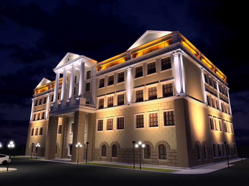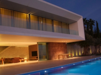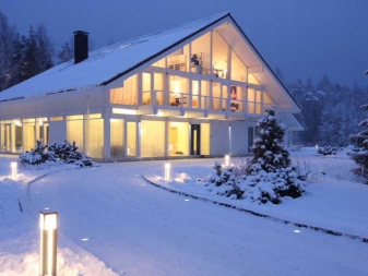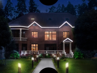 En choisissant l’éclairage des façades, vous pouvez choisir soit l’option dans laquelle tous les murs sont bien éclairés, soit l’accentuation de l’éclairage architectural. Dans le premier cas, tous les murs sont éclairés dans leur ensemble, aucune nuance n'est mise en évidence. L’éclairage est nécessaire pour souligner les particularités de la maison, sa taille et sa grandeur et créer l’illusion d’une structure fondamentale.