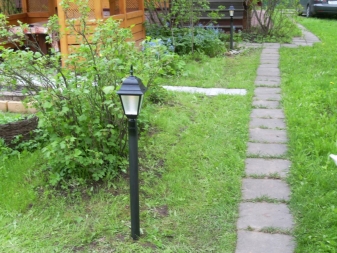 - Pour l'éclairage près du sentier, on utilise le plus souvent des lanternes ordinaires sur des supports. La hauteur des supports peut être très différente, allant des modèles courts près du sol aux options dépassant la hauteur humaine.