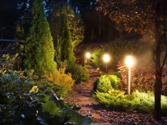 L'utilisation de luminaires sur des poteaux installés le long du chemin est une technique courante pour mettre en évidence les pistes. La hauteur des lampes varie: pour les jardins domestiques, choisissez des modèles décoratifs courts, pour les lieux publics - hautes lumières. Il est important que l’image globale du rétroéclairage soit harmonieuse et attrayante.