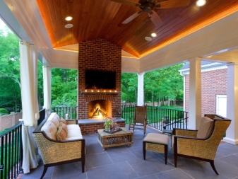 Dans une maison privée dans la rue, ils construisent souvent un belvédère, une véranda ou une terrasse. Sur la véranda ouverte, il suffit parfois d'installer uniquement des plafonniers. Il peut s’agir de lustres classiques ou de suspensions, l’important étant de privilégier les matériaux à haute résistance.Lors du choix, laissez-vous guider par la valeur de l’indice IP: 21, 22 (sous un auvent), 43, 44 (loin des sources d’eau), 54, 65, 66 (près de l’eau), 67, 68 (pour l’éclairage directement dans les fontaines étangs et autres étendues d’eau).