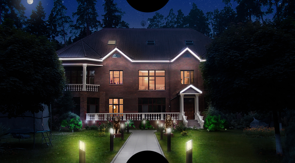 Veuillez noter qu’un éclairage caché est utilisé, obligeant l’attention à s’arrêter uniquement à la maison et aux objets environnants, et pas du tout sur les boîtiers de lampes.