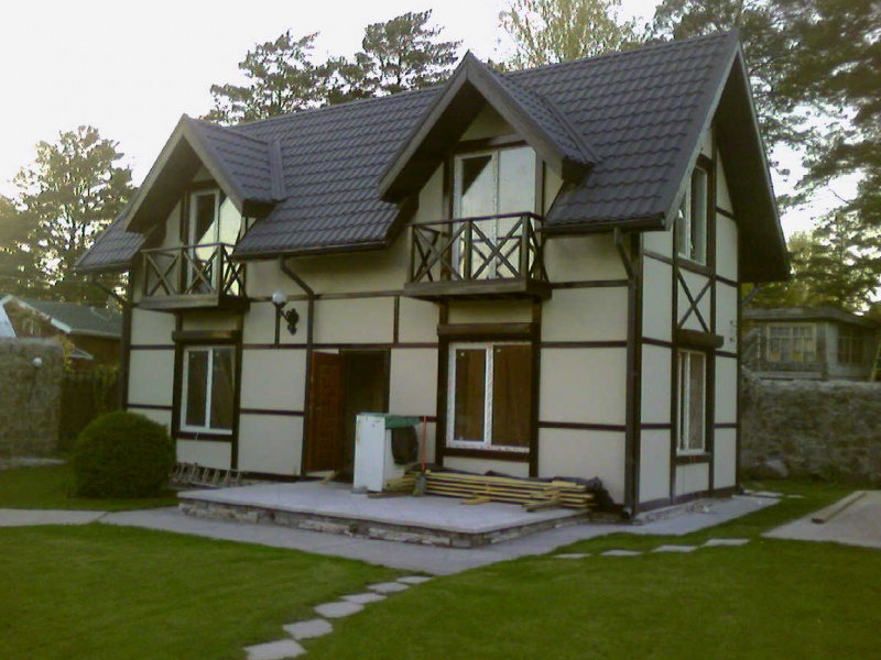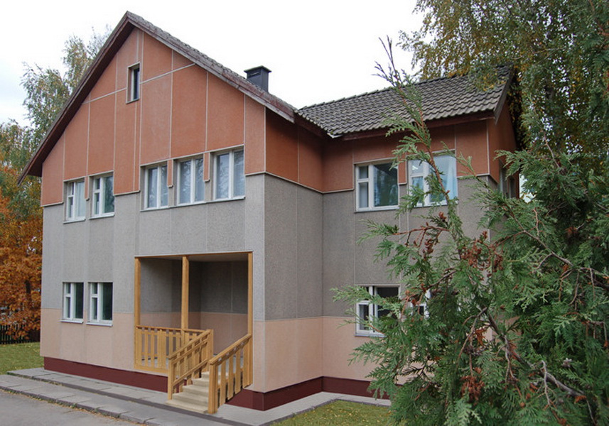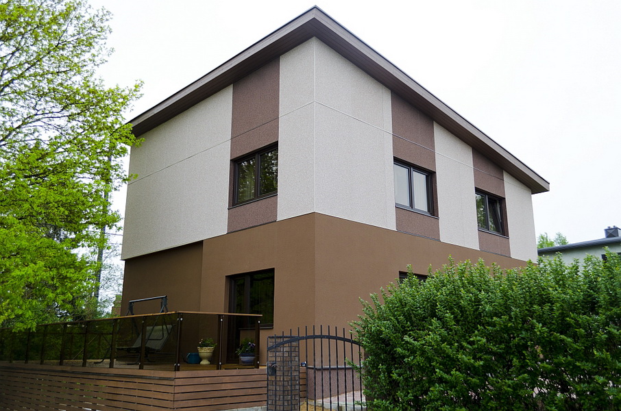 La façade est finie en fixant des feuilles avec des clous, des vis autotaraudeuses, des supports en métal ou des vis au cadre avec des barres ou un profilé en métal. Acceptable l’étape de gainage est d’environ 60 cm, il est préférable de fixer les barres en position verticale, et sur de petites surfaces, vous pouvez utiliser le montage horizontal.Entre les feuilles, des espaces de 4–5 mm sont laissés, ce qui empêche leur déformation lorsque la température de l'atmosphère change.