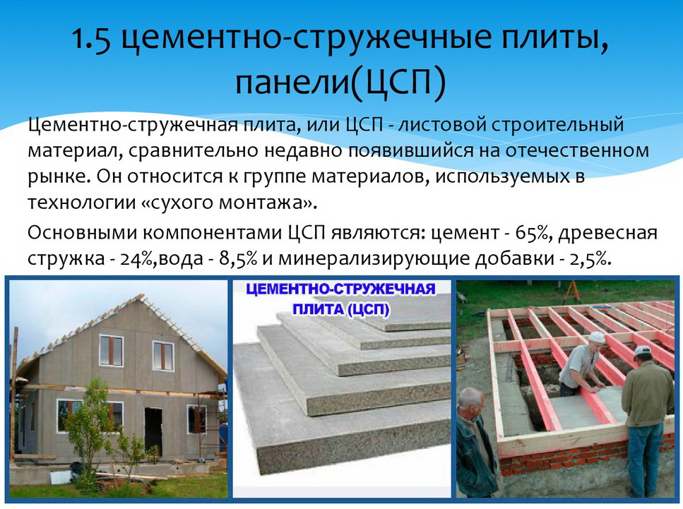 L'utilisation de panneaux de particules liées au ciment dans la construction est déterminée par la résistance, la propreté de l'environnement et le coût relativement faible de ce matériau.